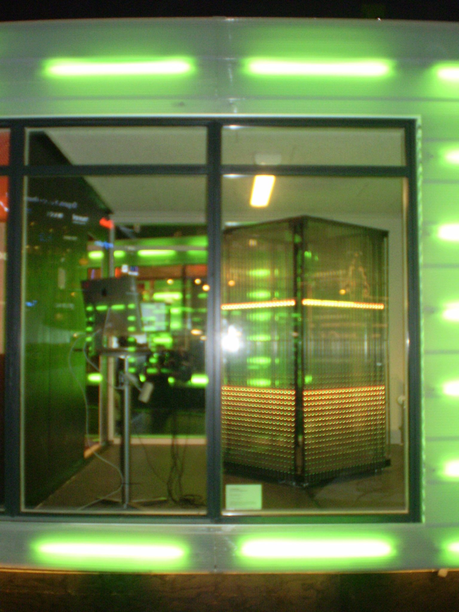 The sculpture that is placed in front of the City Hall is vertically subdivided into three parts. The top represents the data from Rådhuspladsen, the middle part Kongens Nytorv and the lower part Østre Anlæg. A blinking pulse represents the amount of CO2 meaning that a high concentration of CO2 at Rådhuspladsen is visualized as a fast blinking pulse at the upper third of the sculpture. Like wise a high concentration at Kongens Nytorv results in a fast blinking pulse in the middle part of the sculpture and so on.