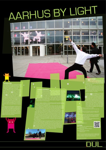At the Urban Screens 2008 conference in Melbourne, Australia, October 3-5, 2008, researchers from DUL will present the poster "Aarhus by Light – An experiment in socially engaging media facades". The poster is available online [PDF 4 MB] as well as the abstract [PDF]. There is also a movie showing the installation alive. More info: Aarhus by Light
